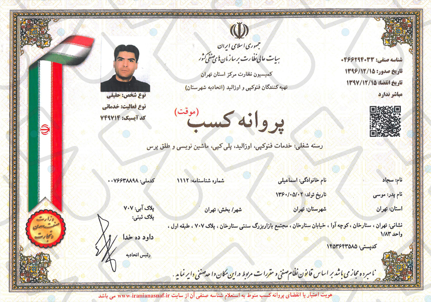 پروانه کسب کانون تبلیغاتی طراحان هنر هشتم