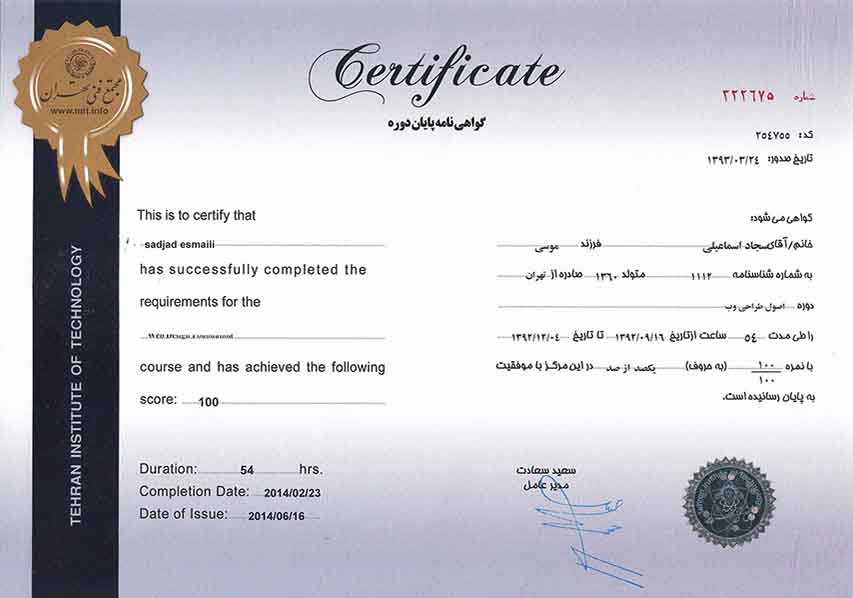 مدرک بین المللی CSS و برنامه نویسی CIW و برنامه نویسی تحت وب از مجتمع فنی تهران